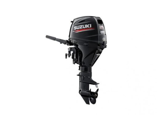 Suzuki 25 Hp 4 stroke comes equipped with the 15 inch short shaft, a push button electric start and manual recoil start. This 4 stroke outboard is known for quick starts, fast acceleration and superior gas economy. Standard with this engine is a 6 gallon fuel tank, fuel line, propeller and tool kit.